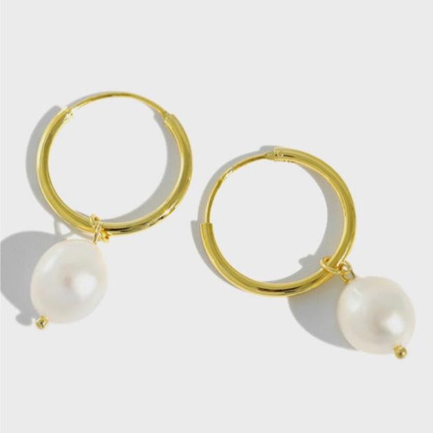 Featuring a hoop earring with a white Freshwater pearl pendant, this piece can also be worn without the pearl for extra versatility.