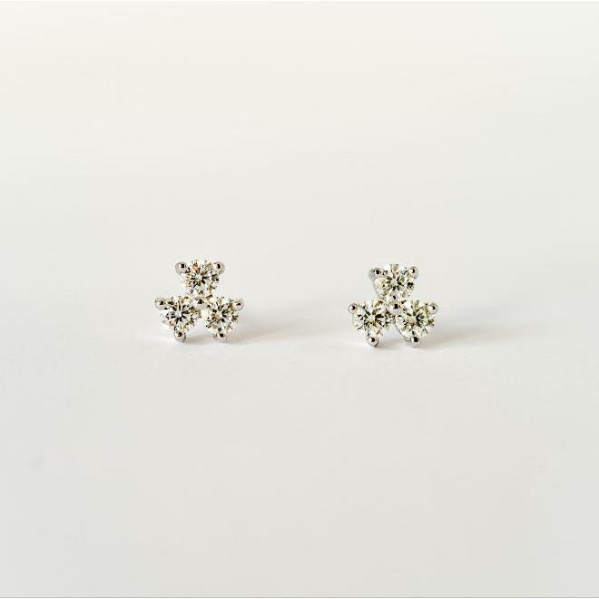 Three stone stud earrings for a delicate look - perfect for the minimalist bride or for everyday wear.