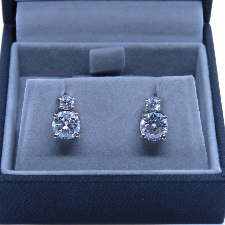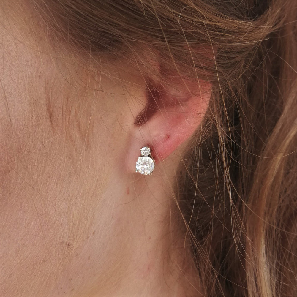 Stones: 3mm and 6mm brilliant cut moissanites per earring (total pair weight approximately 1.8ct)