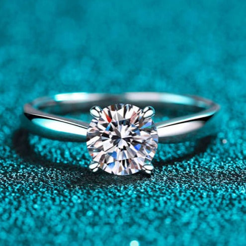 Crafted from your choice of gold or sterling silver with an impressive 2.00 cts total carat weight, this beautiful ring features an 8mm round moissanite stone that simply sparkles. Each ring is carefully crafted to showcase a unique and individual touch.