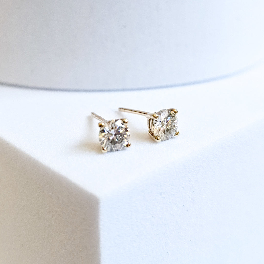 The classic round stud earring set in a four-prong open basket remains a best seller for a good reason: everyone adores these studs!