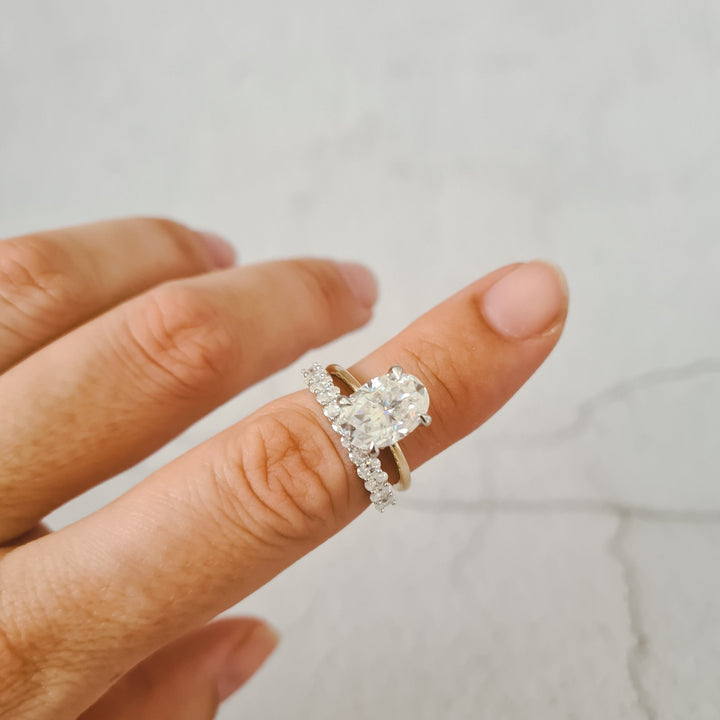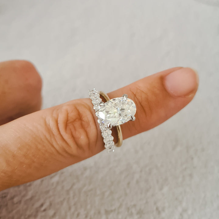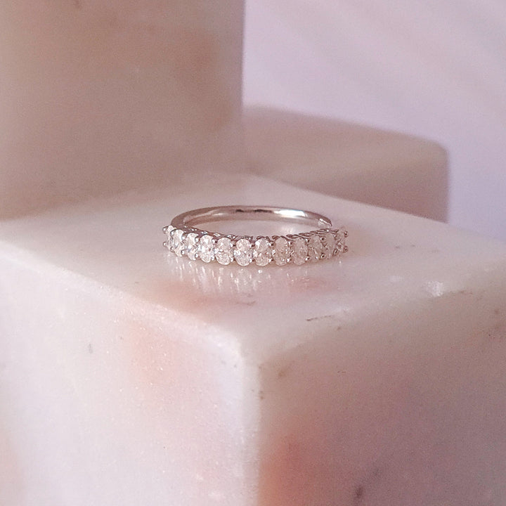 Introducing our stunning Half Eternity Oval Moissanite Band! With 12 3mm x 2mm oval moissanite stones, totaling 1.00 cts, set in sterling silver, this band is the perfect combination of elegance and affordability. Available in gold by request.