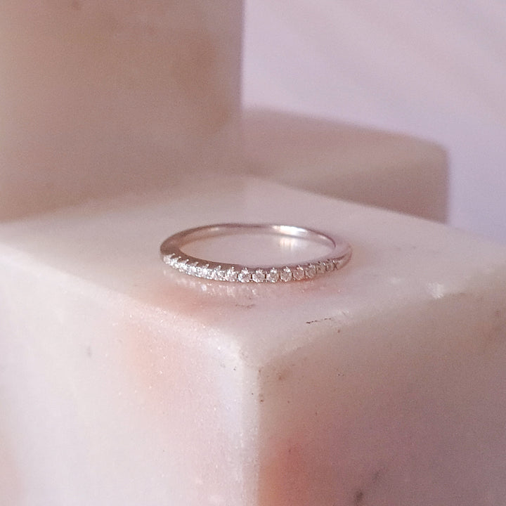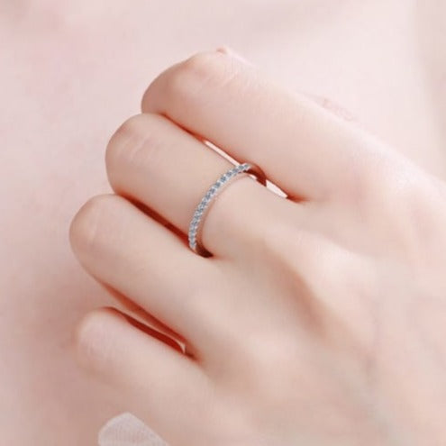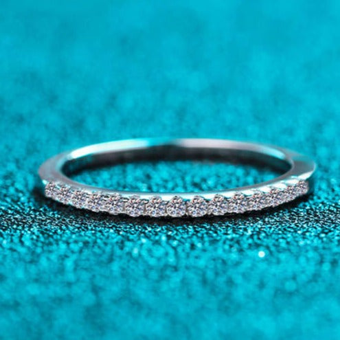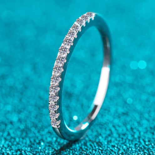 The 1.4mm band, perfectly set with 0.15 carats of sparkling micropavé Moissanite, is crafted from high-quality Sterling Silver and radiates understated elegance.
