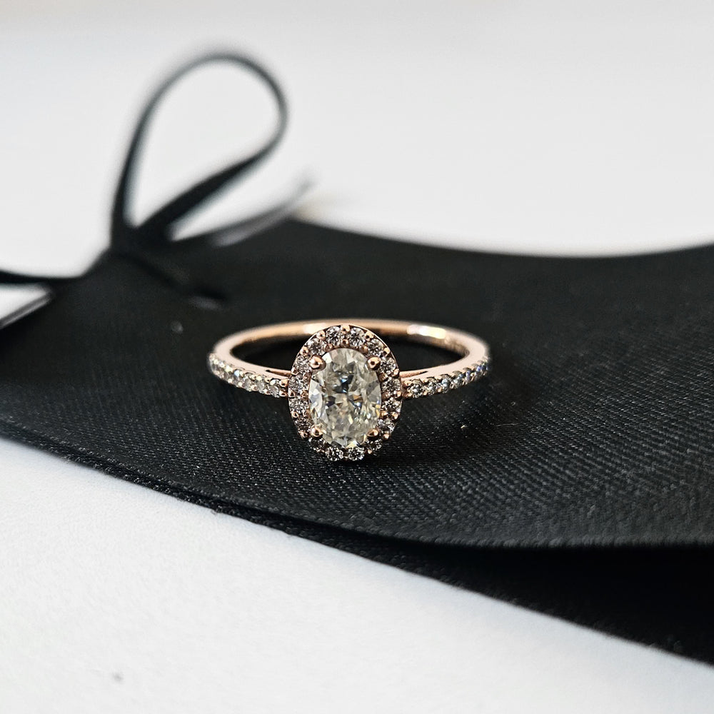 Petite Oval Halo Micropavé Moissanite Ring
